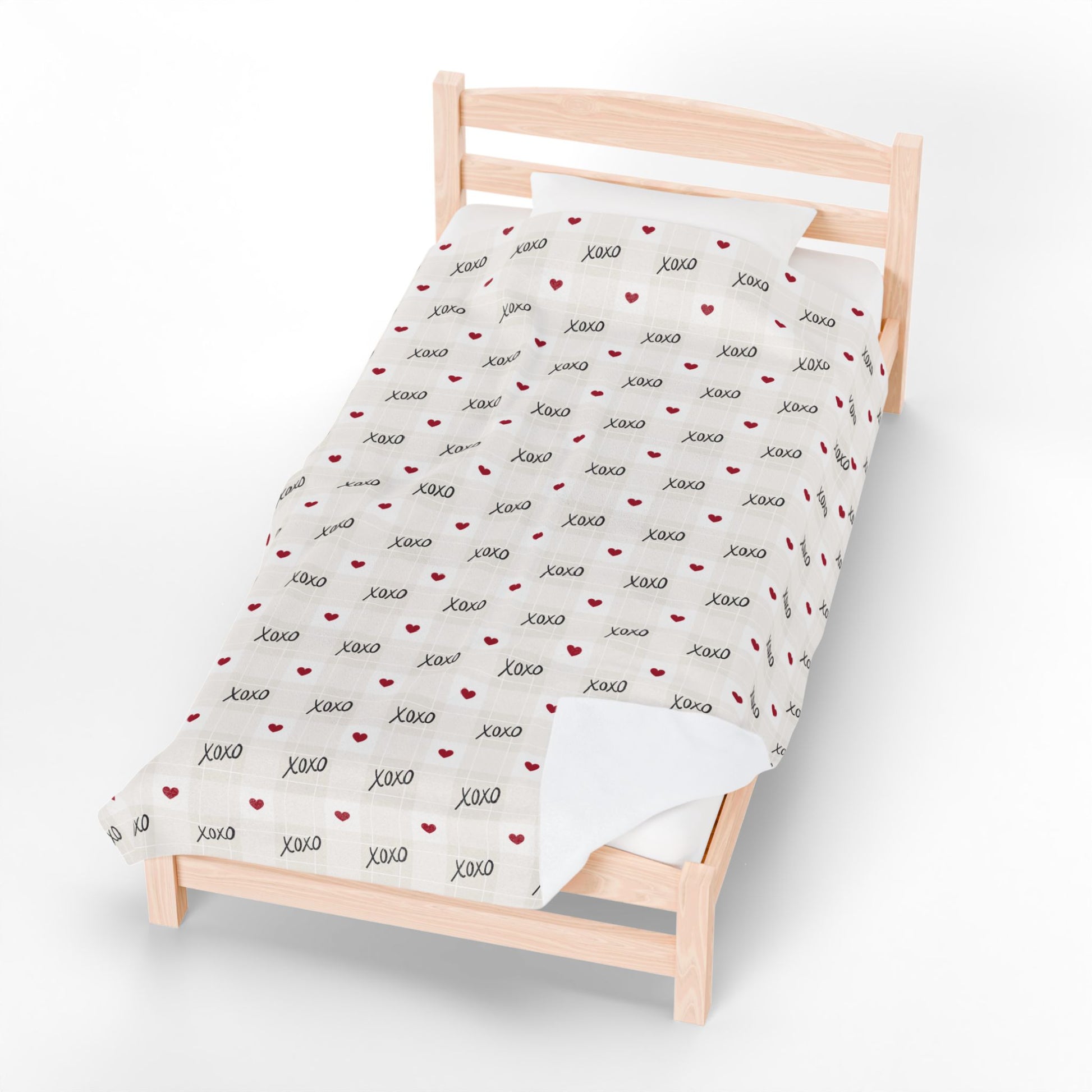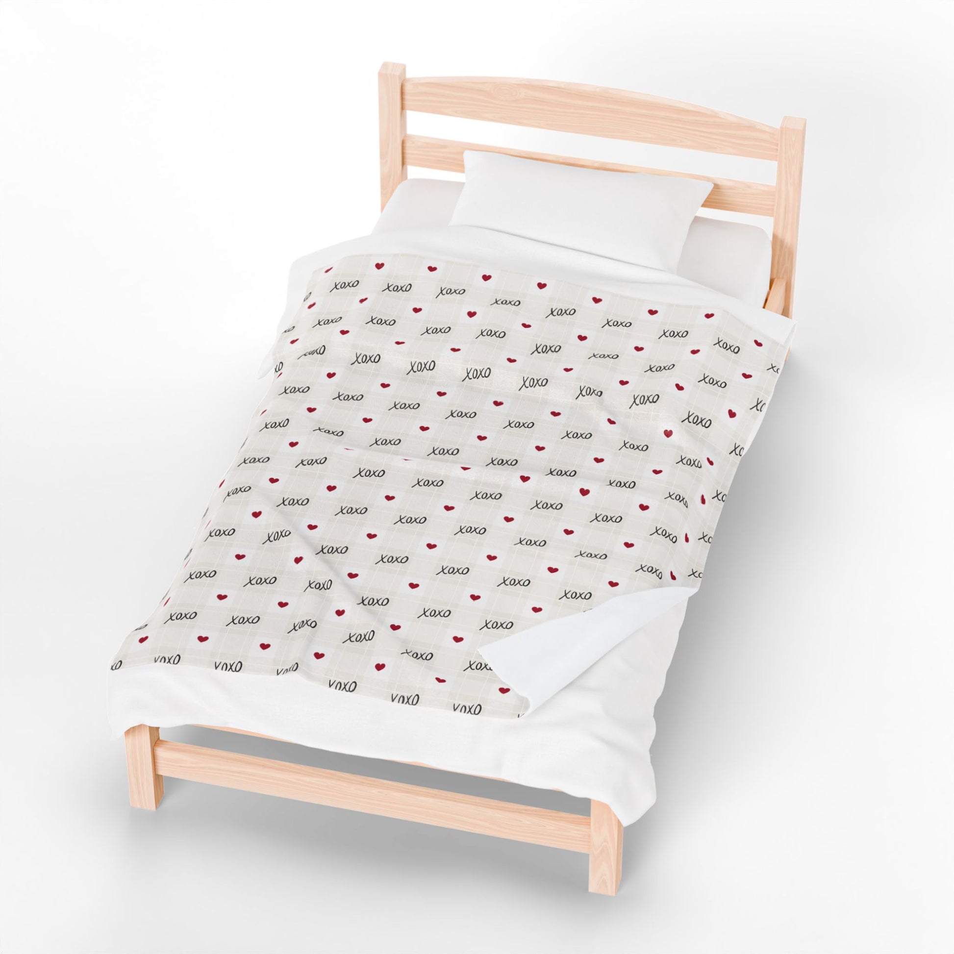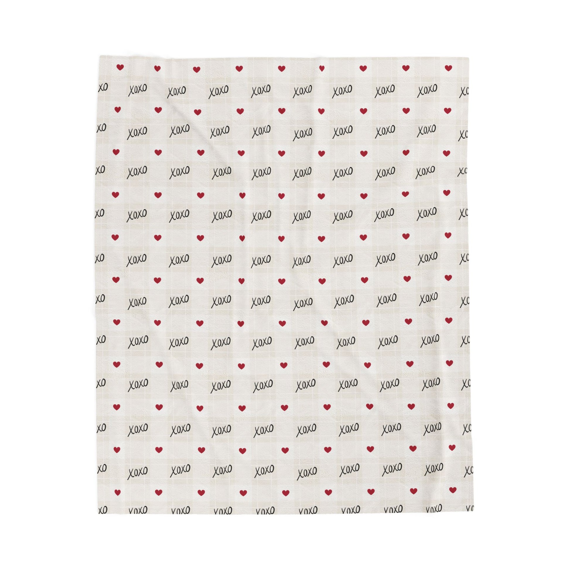 Plush Velveteen Blanket – 'XOXO' Heart Pattern Cozy Throw for Valentine’s & Everyday